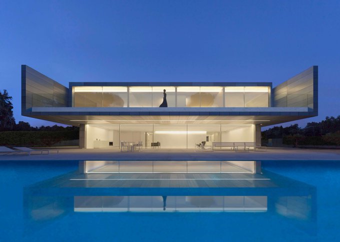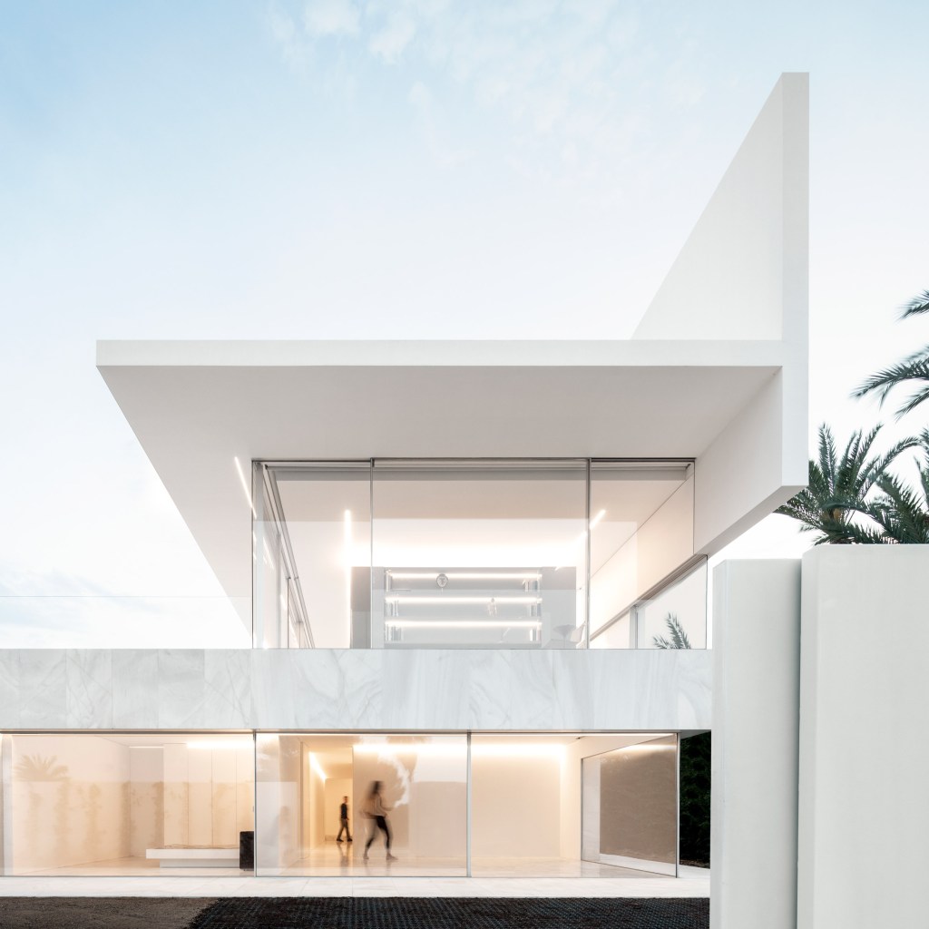 Titled ‘House in Benahavís’ Fran Silvestre Arquitectos has designed an all-white dwelling which is supported by a single volume set at a perpendicular angle to the slope.