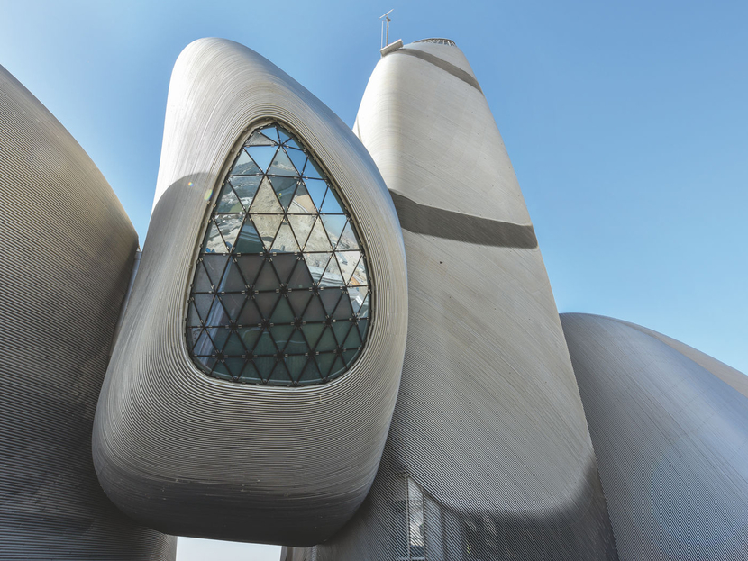 Known for such alluring projects as the first underwater restaurant in Europe and the upcoming Shanghai Grand Opera House, Snohetta (which has offices around the globe) was chosen to lead the design, inspired by the region’s cultural landscape and heritage. “There were a lot of challenges in the engineering of it,” said Nasir, “but symbolically, abstractly, the firm had a good understanding of the design.”