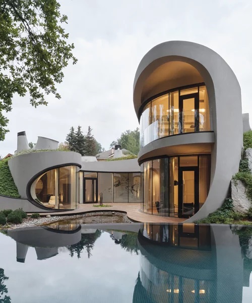 This project with an organic architecture, futuristic residence integrated into an artificial landscape on a village outside Moscow.