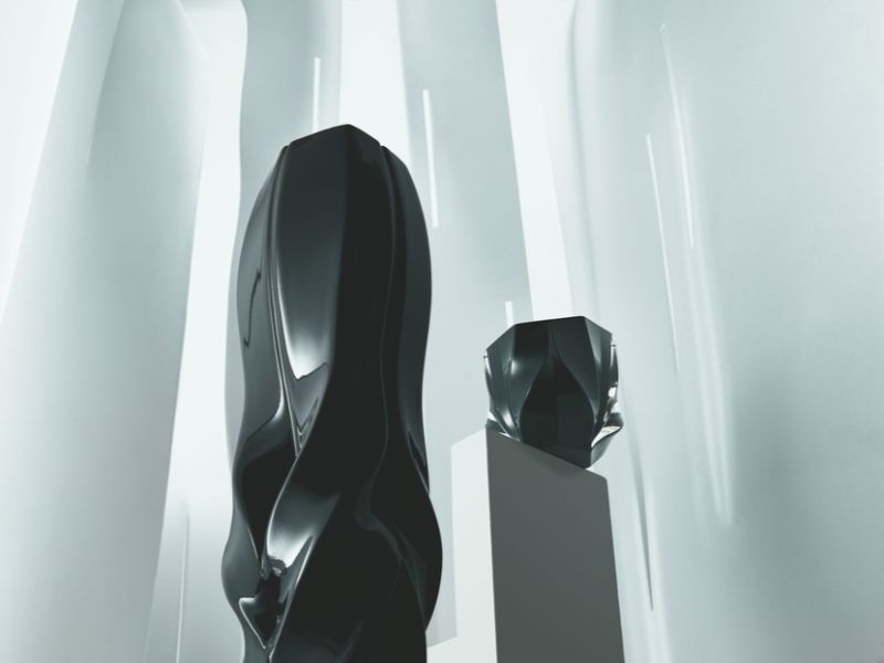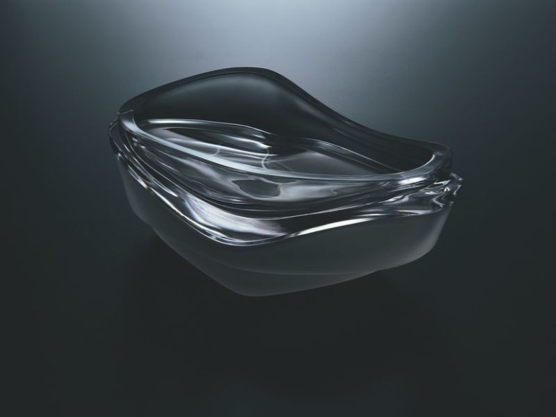 Meanwhile, the limited edition Serenity centrepiece in transparent polished acrylic draws inspiration from Hadid’s innovative formal language of fluidity, its pristine surface interrupted by ripples that refract and reflect light.